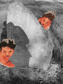 To make my spirits I went into photoshop and took the original image and then removed the babies, then my pictures of the park were set to greyscale as in the world I tried to create the black and white represents what can't be seen by normal people. Almost as if they were in their own world in the park with vandals, creaturs, axe monsters and fish. I placed them crawling out from behind a series of buildings, and old stone monuments as I felt this was a really interesting look and it is eye-catching and draws in the audience looking at it.